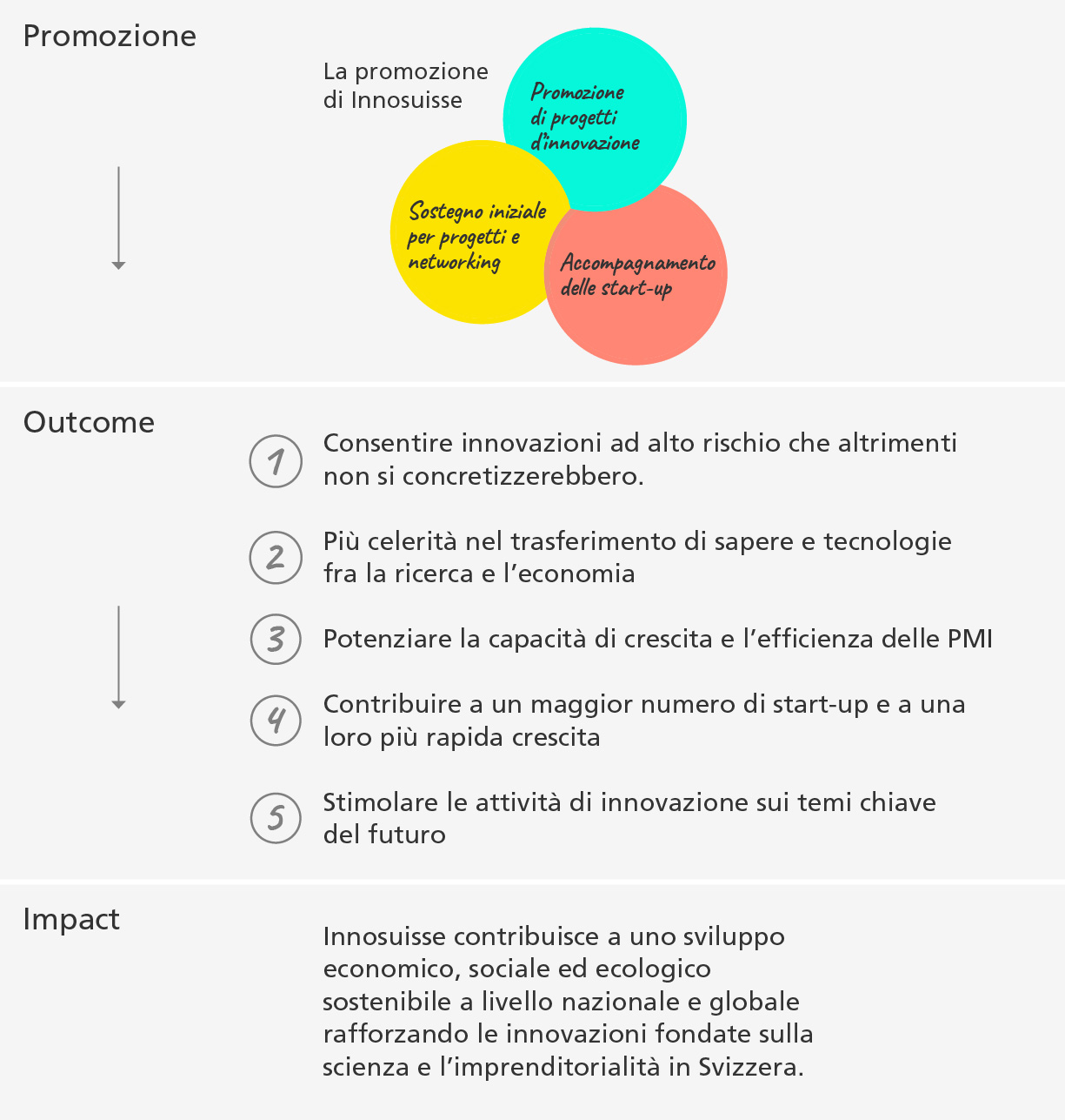 Innosuisse intende contribuire allo sviluppo economico, sociale ed ecologico sostenibile promuovendo l’innovazione. Al fine di esaminare in modo continuo e sistematico l’impatto della sua attività di promozione, dal 2021 Innosuisse svolge un monitoraggio dell’impatto. A ciò si aggiungono ulteriori analisi d’impatto e studi esterni su temi orientati all’impatto. Alcuni esempi selezionati forniscono una visione concreta dei risultati orientati all’impatto dei finanziamenti.